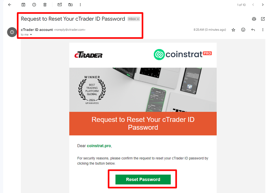 Then you can login with your email and new password to cTrader web app, PC or Mac.